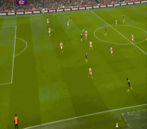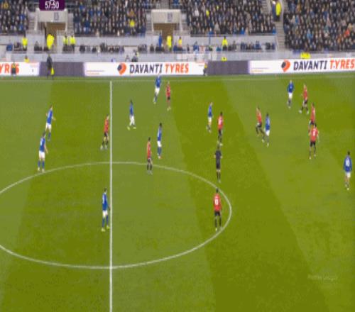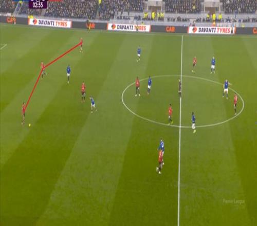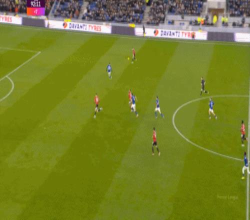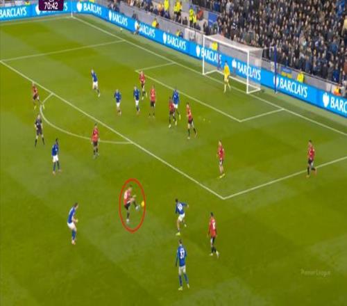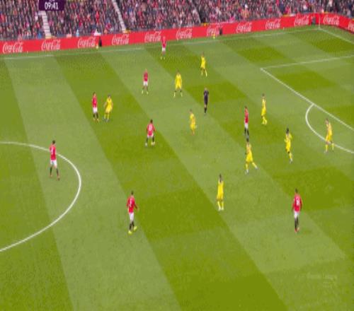 在沒(méi)有固定且典型的中鋒角色的情況下,曼聯(lián)實(shí)際上是在用跑動(dòng)牽制對(duì)手,從而繞進(jìn)兩線之間: