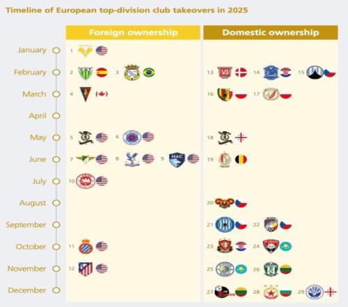 2025年,美資收購(gòu)了9家歐洲頂級(jí)聯(lián)賽俱樂(lè)部,勢(shì)力版圖進(jìn)一步擴(kuò)張。