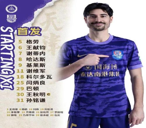 本場(chǎng)比賽,吳興涵、黃嘉輝因傷缺陣,津門虎的首發(fā)陣容也因此不得不做出兩處調(diào)整,門將閆炳良;三名中衛(wèi)從左至右分別是王獻(xiàn)鈞、科爾多瓦、謝維軍;孫銘謙和巴頓擔(dān)任左右邊翼衛(wèi);中前場(chǎng)沒有任何變化,隊(duì)長(zhǎng)王秋明、豪梅·格勞、哈達(dá)斯組成前衛(wèi)線;基萊斯和謝蒂內(nèi)搭檔雙前鋒。