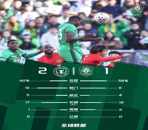 最終,北京國安客場1-2負(fù)于遼寧鐵人楠波灣。