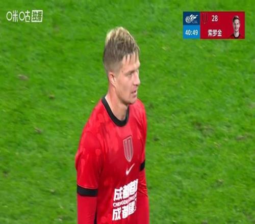 第40分鐘,持續(xù)圍攻的成都蓉城再度創(chuàng)造出機(jī)會(huì),羅慕洛射門被撲出,索羅金補(bǔ)射斬獲個(gè)人中超首球,成都蓉城半場(chǎng)前將比分?jǐn)U大為2-0。