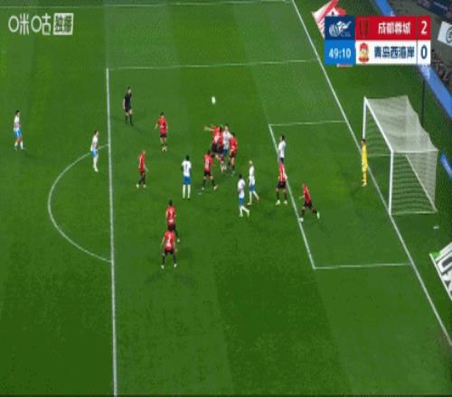 第40分鐘,羅慕洛禁區(qū)前勁射被劉世博勉力撲出,索羅金門前補(bǔ)射得手,成都蓉城2-0青島西海岸。