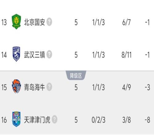 中超9隊(duì)被罰分:5隊(duì)已回正4隊(duì)負(fù)分,國(guó)安5輪負(fù)1分排倒數(shù)第4