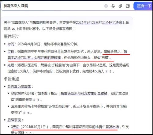 無獨有偶,海港上一次爭議的腦震蕩換人,發(fā)生在2024年的足協杯半決賽,同樣是對陣申花,是不是很巧了!當時,魏震突然上前把馬萊萊推倒,后者身體失衡后手臂一揚,打到魏震的額頭,魏震隨即倒地(上圖)。