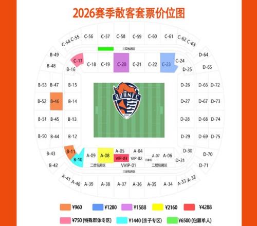 上賽季120元的區(qū)域,本賽季細(xì)分成了108元、128元兩個檔次,球迷可以根據(jù)自己的需求合理選擇。上賽季180元的區(qū)域(A6至A9),基本保持不變。VIP區(qū)域從360元調(diào)整到了388元。